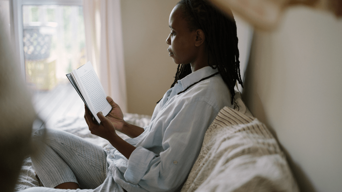 - Crack open a good book and read a few chapters in a comfy chair.